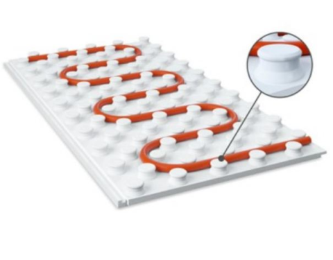 Плита используется в системах водяного тёплого пола для фиксации труб и создания равномерного распределения тепла. Минимальный рекомендуемый шаг укладки трубы — 50 мм.